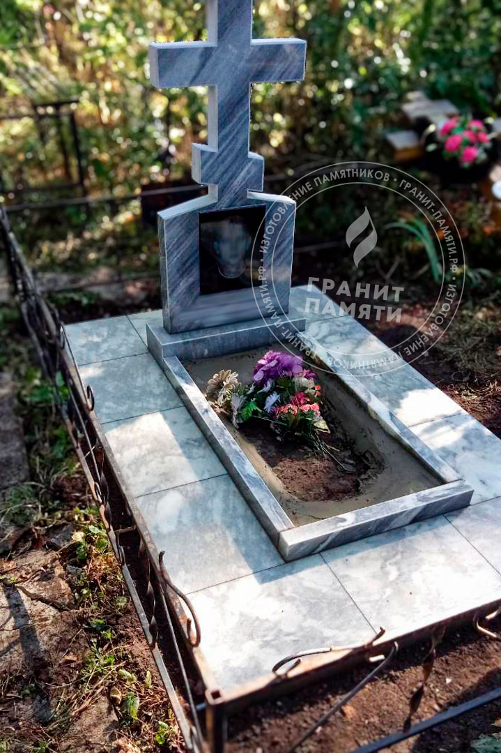 Мраморный памятник изготавливается из натурального мрамора Полевского месторождения — одного из самых известных и качественных российских мраморов. Этот благородный камень светло-серого цвета с характерным природным рисунком, обладает уникальной текстурой, которая подчеркивает торжественность и элегантность любого мемориального сооружения.